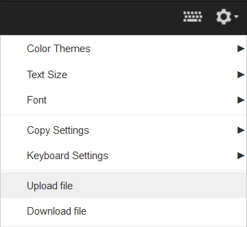 Upload the file to your server using the terminal’s built-in upload, found from the top-right cogwheel